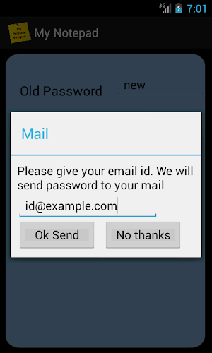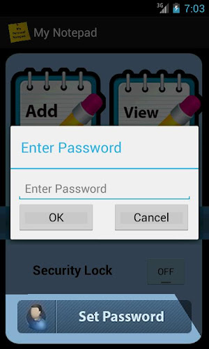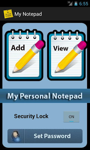 jeho aplikaci poznámkový blok, kde můžete uchovávat své poznámky v soukromí zadáním hesla.můžete také zapnout nebo vypnout zabezpečení. heslo pro první nastavení a pro první nastavení hesla použijte staré (výchozí) heslo.