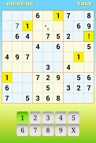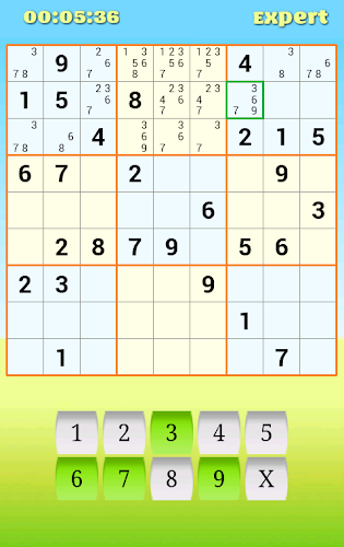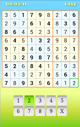 Nová implementace populární logické hry Sudoku. Hra má velmi příjemné rozhraní a snadné provoz. hádanka tvořená tak, aby měla pouze jedno řešení.Tato verze je bez reklam. K dispozici je také bezplatná verze hry s reklamou. Velikost 9x9, rozdělena na menší čtverce se stranou 3 buněk. Takže pouze deska má 81 čtverců. Některé buňky na začátku hry jsou číslo (1 až 9). Cíl - vyplnit volné buňky číslicemi od 1 do 9, takže každý řádek, každý sloupec a každý malý malý čtverec se každá číslice splní pouze jednou.