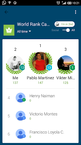 plně integrováno s facebookem, takže můžete na svém facebookovém profilu zveřejňovat svou nejvyšší rychlost a svou pozici ve světě a ve vaší zemi.