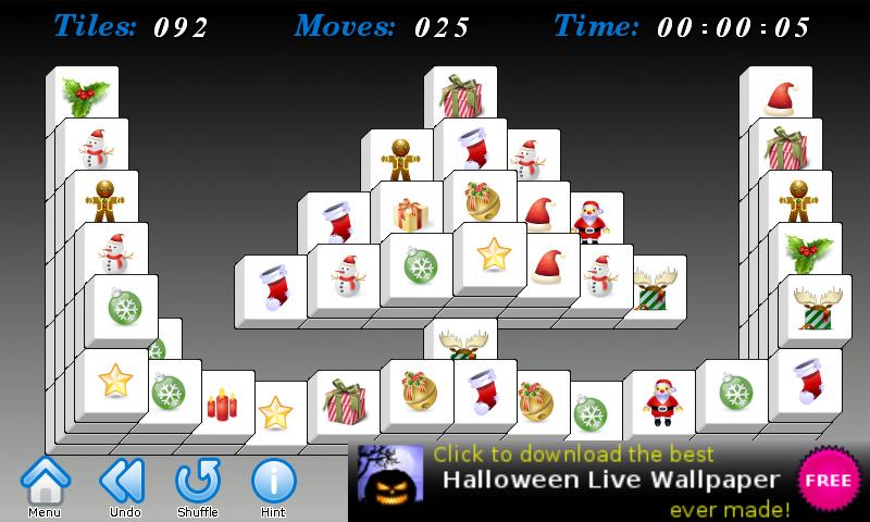vánoční mahjong je klasická logická hra mahjong solitaire s roztomilým vánočním tématem. cílem je odstranit všechny destičky z hrací plochy. můžete odstranit pouze spárované volné dlaždice. dlaždice je zdarma, když nalevo ani napravo od ní nejsou žádné dlaždice.hra běží a vypadá skvěle na telefonech i tabletech.