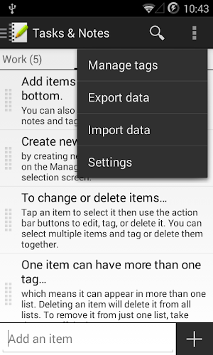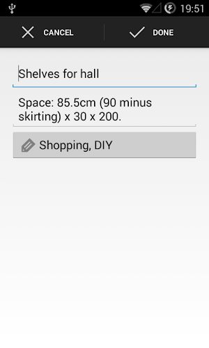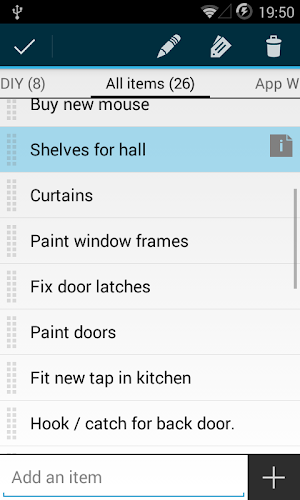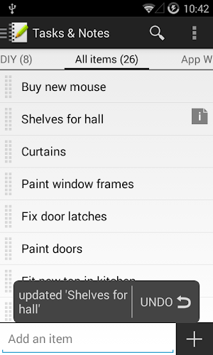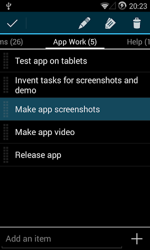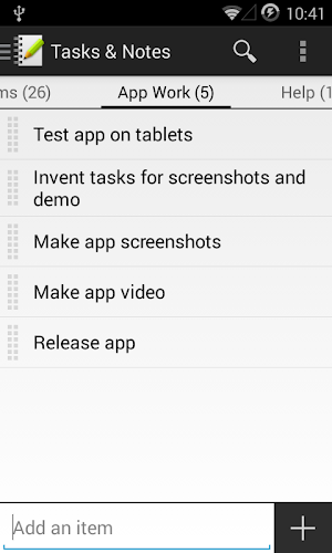 Seznam jednoduchá aplikace, s efektivní uživatelské rozhraní úkolů. Použijte jej pro seznamy úkolů, nebo jen pro zaznamenání poznámek.Vlastnosti: