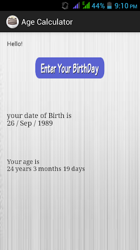 Analýza A Revize Aplikací Pro Android: AgeCalculator by Robo Eye Labs, Vyvinuté Společností Robo Eye Labs. Uvedeno V Kategorii Personalizace. Aktuální Verze Je 1.0, Aktualizována Na 16/01/2014 . Podle Recenzí Uživatelů Na Google Play: AgeCalculator by Robo Eye Labs. Dosaženo Více Než 211 Instalací. AgeCalculator by Robo Eye Labs Má V Současné Době Recenze 1, Průměrné Hodnocení 5.0 Hvězd