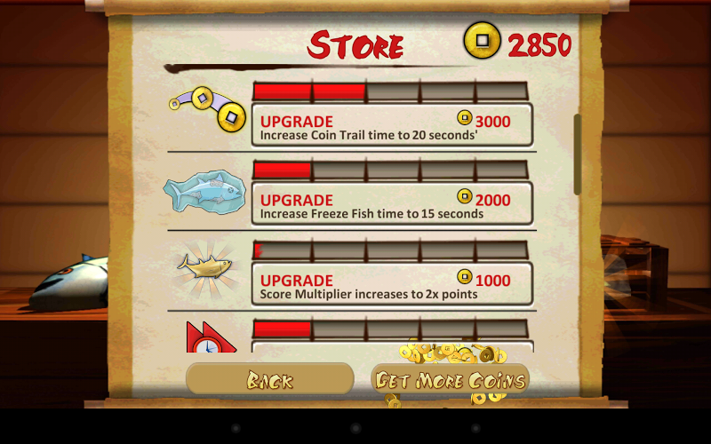 • 2 herní režimy! Vydělávejte co nejvíce, jak můžete, s 3 životy v režimu Sushichop, poté se vypořádejte s režimem Sushimaster, kde máte za úkol krájet pouze ryby, které odpovídají objednávkovým kartám!