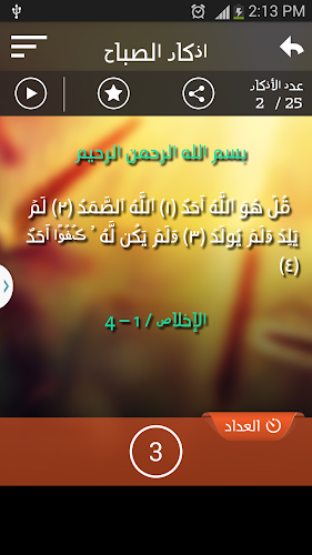 quran and alsnhomn through the application will be able to: - listen to work with adhkaar property in the background even if closed alhatv.- screen alarm for reciting the morning and almads- list of ”favorite” which enables you to easily access them whenever you want to - share your friends balozkar diverse