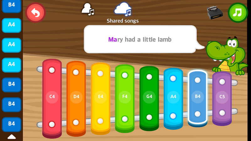 Introducing the new 2-player mode which allows you to play music together with your kid. Any notes you played will be highlighted on the opposite side of the phone screen so your kid may follow and learn to play songs from you.