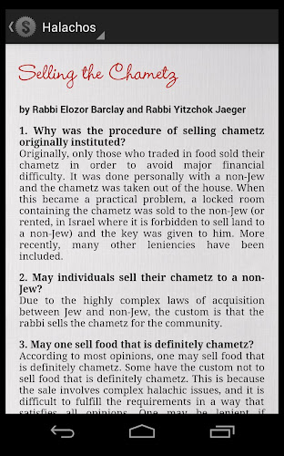 No Chametz aplikace pomáhá Židé projít procesem hledání, čištění, ničit a prodávají své chametz před dovolenou Passover.S Chametz ve vašem vlastnictví, může být vážný problém halachic. Tato aplikace vám pomůže ujistěte se, že jste správně odstranit chametz podle svého vlastnictví