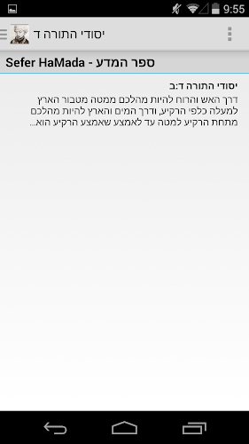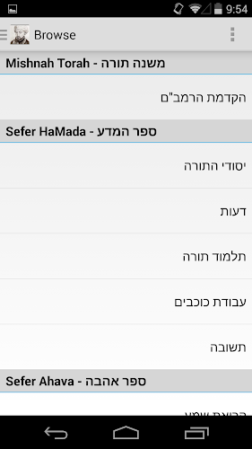 Mishneh Torah obsahuje kompletní hebrejský text klasického kodexu židovského práva, jehož autorem je Mojžíš Maimonides (1135–1204), jeden z nejvýznamnějších rabínů středověku. Zůstává mistrovským dílem jasnosti, formy a funkce a je základním rabínským textem studovaným po celém světě.Mishneh Torah pro Android je společný projekt společností RustyBrick a Davka Corporation.