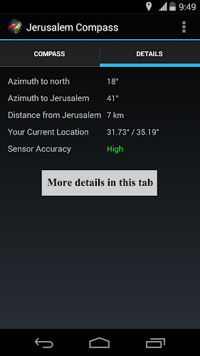 Nezáleží na tom, zda jste mimo své místo nebo pozici moudré nacházíte na novém místě, kde je hledání severu stejně matoucí. Aplikace vám umožní najít severní stranu a také směr, kde se nachází Jeruzalém.