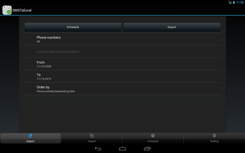 SMStoExcel je jednoduchý způsob, jak zálohovat a obnovit textové zprávy telefonu. Své textové zprávy si můžete prohlédnout v jakékoli aplikaci kompatibilní s Excel, jako je OfficeSuite, QuickOffice nebo Kingsoft Office v...