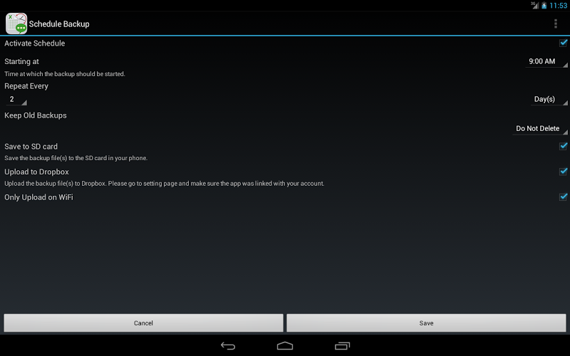 - Vyberte naplánovaný čas na automatické zálohování. }- Odstraňte zprávy SMS v telefonu.