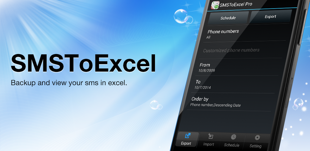SMStoExcel je jednoduchý způsob, jak zálohovat a obnovit textové zprávy telefonu. Své textové zprávy si můžete prohlédnout v jakékoli aplikaci kompatibilní s Excel, jako je OfficeSuite, QuickOffice nebo Kingsoft Office v telefonu/tabletu. nebo MS Excel, OpenOffice.org nebo čísla v počítači.- záložní zprávy SMS ve formátu Excel 97-2003.