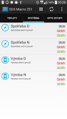 Přes optické vstupy na všech modulech řady SDS (MICRO, MACRO, TTCPRO, UPS) je možné online sledovat odběr a výrobu energií. Je možné sledovat všechna zařízení, které jsou vybavena impulsním výstupem.