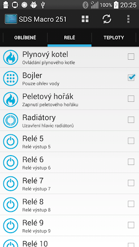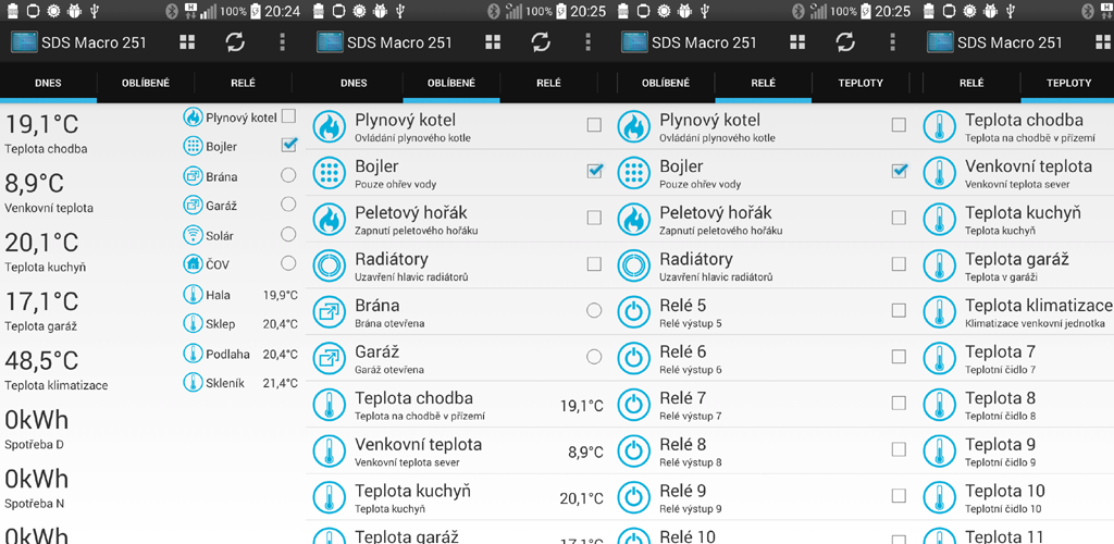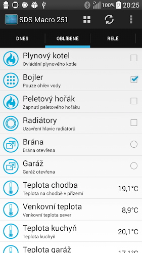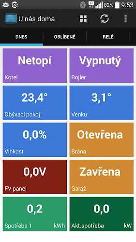 Ovládání relé dlouhým stiskem na stránce Dnes