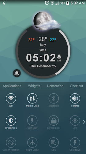 TSF přepínací plugin je TSF Shell Unique Plugin, který funkce jsou přepínánymobilní data, bluetooth, jas, světlé světlo, GPS, auto-rotátní obrazovka, režim letadla, nfc ...