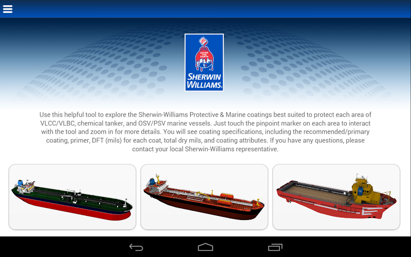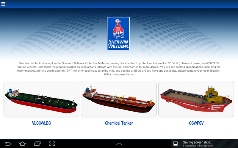 This app has been discontinued. Visit the app store today to download the Sherwin-Williams P&M app and click on the Marine link within the app for updated information on Sherwin-Williams Protective & Marine coating solutions.
