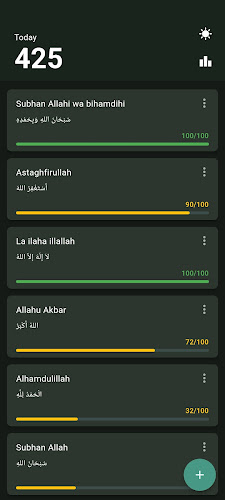 Everyday progress does not reset and saved for history. previous version we could see how many tasbeeh we have made so far today that option was very encouraging. its very good app may Allah give you your reward in janah.