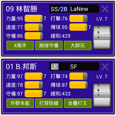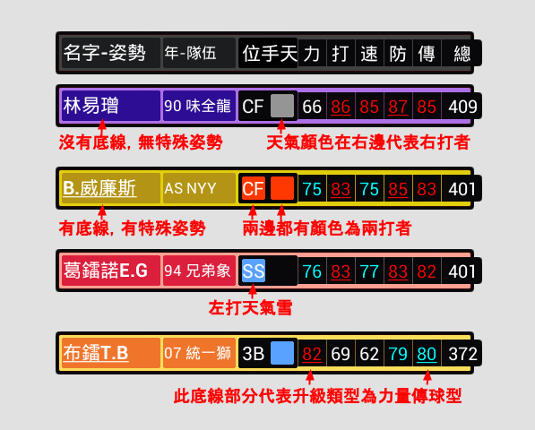 1. 增加球種 推土機曲球 / 木匠曲球 / 火車滑球 / 火車二縫 / 書僮曲球 / 虎王曲球 / 戰神慢曲 / 國王變速 / 天才曲球 / 孔恩滑球 / 閃電指叉 / 將軍變速 / 豪哥螺旋 / 火焰掌心球 / 哈神伸卡
