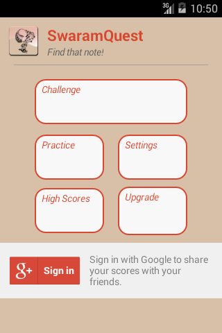 Swaram Quest je kvízová hra založená na Carnatic Music, která slouží jako nástroj pro trénink uší. Hra má 32 úrovní, přičemž každá úroveň má různé cíle, z nichž všechny krouží kolem identifikace hudebního vzoru hraného ve vybrané Melakarta Raga. Aplikace má režim cvičení pro trénink obecného hudebního uší, který může být užitečný pro nadšence hudebních nadšenců Hindustani a obecně pro všechny hudební nadšence, které se zajímají o heptatonické stupnice. Aplikace poskytuje schopnost změnit základní Melakarta Ragam na některý z možných 72 Melakarta Ragas systému Carnatic Raga. Aplikace má následující funkce+ 32 vzrušujících úrovní k dokončení