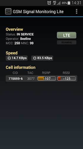 Monitor Advanced buněčné sítě shromažďuje informace o okolních základních stanicích včetně ID buněk, LAC, úroveň síly signálu.Pokud používáte zařízení Dual SIM, aplikace bude fungovat pouze se SIM vloženým do prvního slotu.