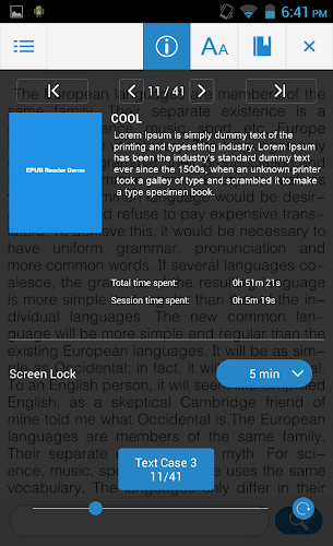 E_reader je snadno použitelná čtečka elektronických knih. Umožňuje vám přečíst své knihy EPUB/TXT. E_reader má perfektní podporu stylu epub a kompatibilitu epub, přináší vám vynikající zážitek ze čtení! (Book Store přichází v další verzi.)Funkce: