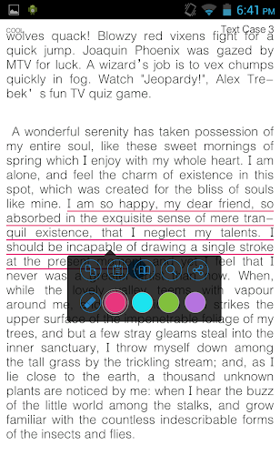 ● Dlouhý stiskněte a vyberte text, pořizujte si poznámky a sdílejte na Facebooku/Mail.
