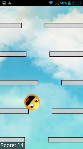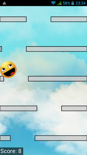 Jednoduchá hra, kde musíte zachránit smajlíka před rozdrcením. Pomozte mu překročit bariéry co nejrychleji. Překročí co nejvíce bariér, abyste získali vyšší body.herní kód založený na: https://gitorious.org/free-fall