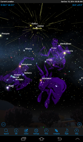 * Animované meteorové sprchy, s úplnými informacemi o zobrazení a velkolepou grafikou.