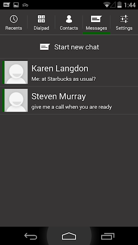 • seznam nedávných chatů