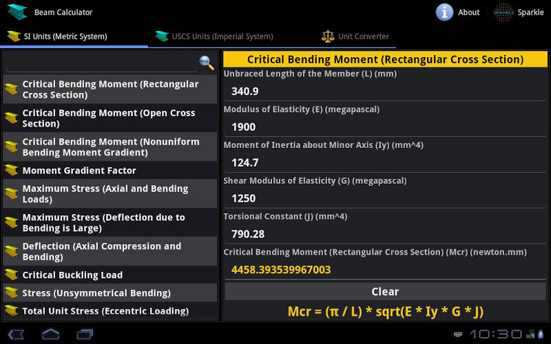 Beam Calculator Tablet
