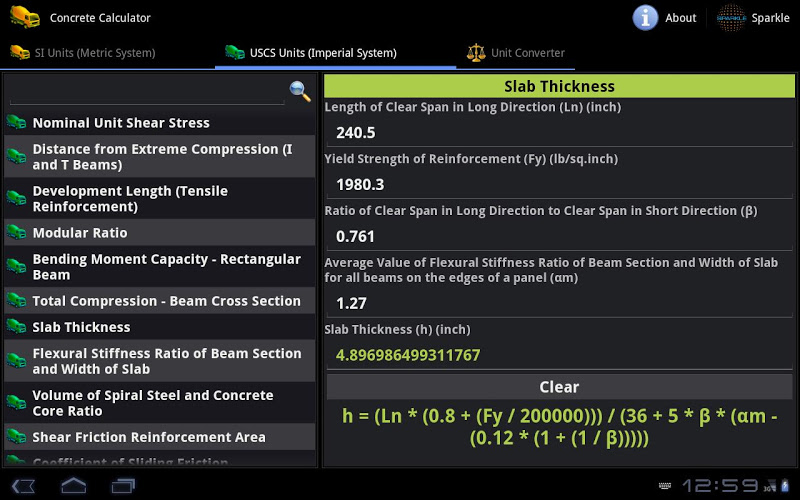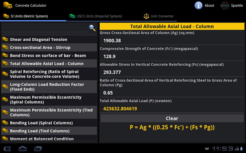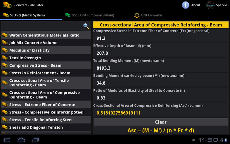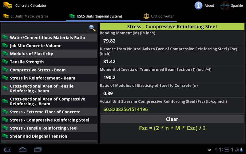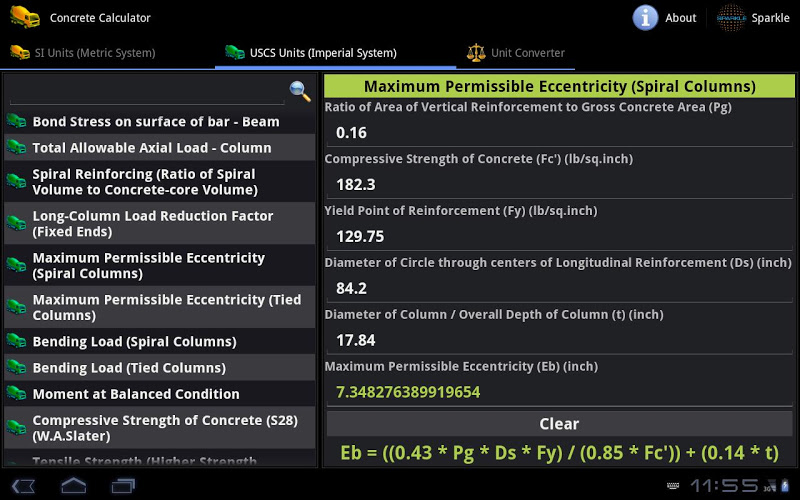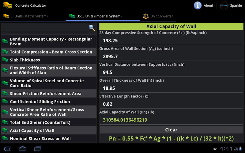 • Kompletní pokrytí kalkulaček a převodníků ve stavebním inženýrství a betonových parametrech.