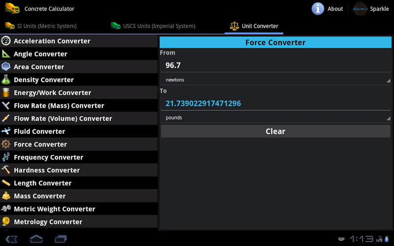 Univerzální koncrete Calculator obsahuje po 32 konverzích: