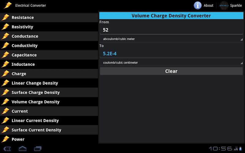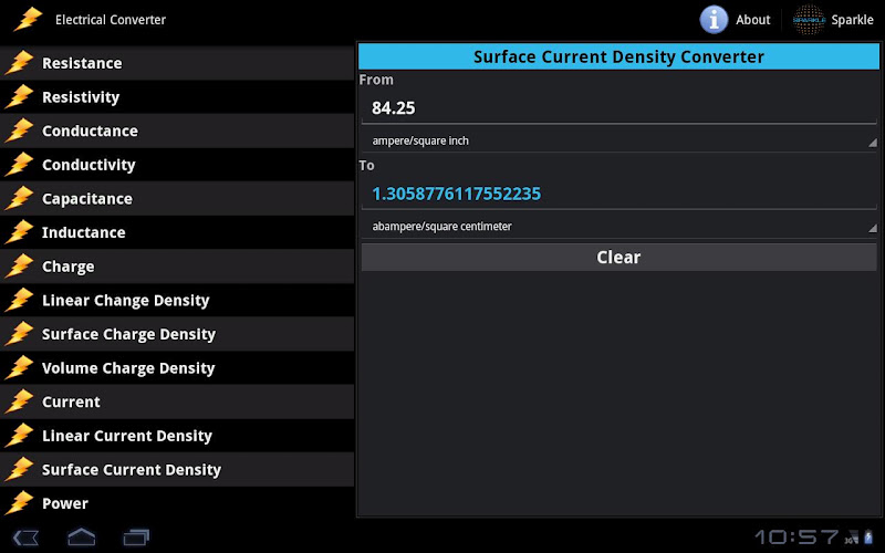 elektrický převodník je převodní kalkulačka, která dokáže rychle a snadno překládat různé elektrické měrné jednotky. skládá se z 16 kategorií se 173 jednotkami a 2162 převody.seznam elektrických měničů:
