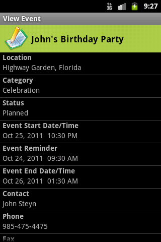 • Všechny základní podrobnosti jsou zahrnuty pro událost.