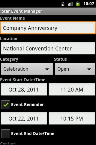 Správce Star Event Manager je komplexní nástroj pro správu událostí. Manažer Star Event Manager vám pomůže uspořádat vaše večírky, oslavy, tábory, workshopy, schůzky, schůzky, semináře, konference atd. Ukládá všechny vaše akce se všemi základními detaily. Rozsáhlé nástroje pro přidávání kategorií. Události lze také exportovat do formátu souboru CSV. Skvělá možnost připomenutí události s dalšími nástroji. Jednoduché možnosti úpravy a odstranění podrobností události. Kompletní nástroj pro správu událostí.Správce událostí: