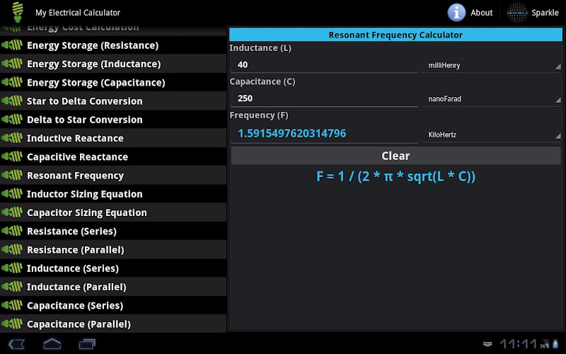 Moje elektrická kalkulačka obsahuje 39 kalkulaček, které mohou rychle a snadno vypočítat různé elektrické parametry. Automatické výpočty a konverze s každou jednotkou a změnami hodnoty. a must have utilitymy electrical calculator contains following 39 calculators:
