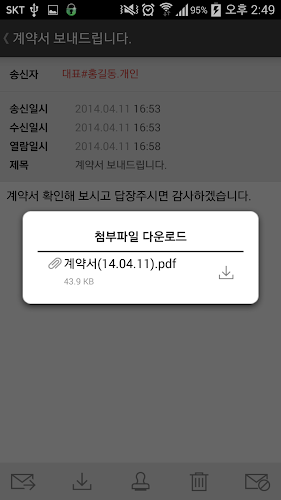 Shop-Mail je e-mail, který mohou být certifikované smlouvy, certifikáty, účty, oblasti pro tento sektor, právní účinek, který vyžaduje osobní údaje, jako jsou oznámení, jako jsou oblasti pro zabezpečení dokumentů. [Funkce] 1.K dispozici také jako aplikace SKT / mobilní web a aplikace pro Android.
