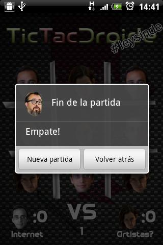Poznámka: Toto je téma pro hru Tictacdroide (dostupné na trhu) narážku na diskusi o zákoně Sinde v Red.enfrenttě v Noughts a protíná Davida Bravo, právního zástupce a duševního vlastnictví a andělůGonzalez-Sinde, ministryně kultury? “.