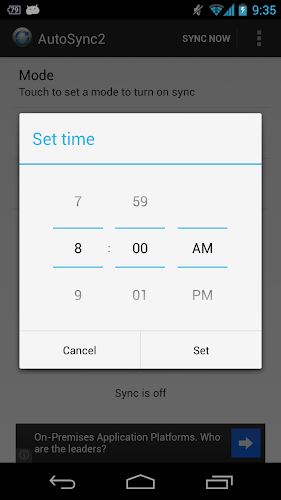 # autosync 2 - save your battery life and data usage- save data usage by select turn on sync when ”wi-fi” is connected- save battery usage by select turn on sync when ”external power” is connected- schedule a ”time” a turn on sync- set...