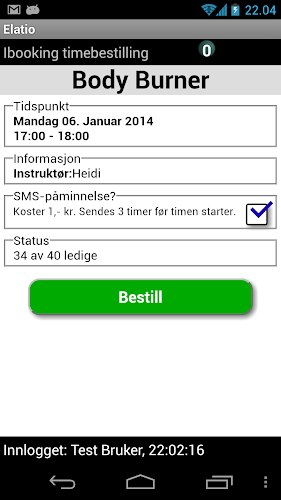 nyní můžete použít svůj telefon nebo tablet s Androidem k přerezervování, zrušení nebo zařazení na čekací listinu na skupinové lekce s fitness centrem elatio na bø v aplikaci telemark.elatios obsahuje kompletní online rezervaci, zpravodajské centrum a mapu, abyste nás našli.volitelná sms upomínka od booking.appen vyvinutá nilsem halvardem lundem a kobylkou arctanderem larsenem na smallsoft.com pro ibooking.nosøkeord: elatio bea v telemarku, rezervace
