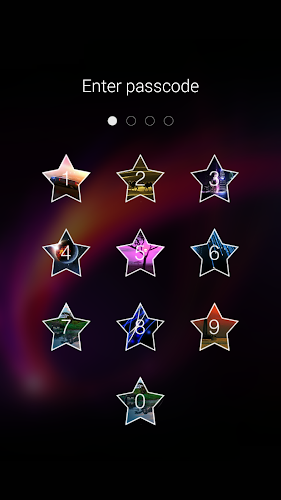 ★ Přidejte do každého z tlačítek pro přístupové kódy hvězdu z tapety nebo galerie aplikace.