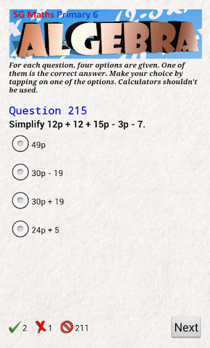 Analýza A Revize Aplikací Pro Android: SG Maths Primary 6 Algebra, Vyvinuté Společností SoloSeal. Uvedeno V Kategorii Vzdělávání. Aktuální Verze Je 1.2, Aktualizována Na 19/11/2017 . Podle Recenzí Uživatelů Na Google Play: SG Maths Primary 6 Algebra. Dosaženo Více Než 2 Tisíc Instalací. SG Maths Primary 6 Algebra Má V Současné Době Recenze 12, Průměrné Hodnocení 3.3 Hvězd