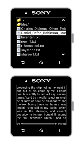 To je aplikace pro Sony SmartWatch (1 a 2), umožňuje otevřít textové soubory (TXT).Klíčové vlastnosti: