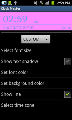 V režimu můžete nastavit velikost a barvu písma, barvu pozadí a podobně.