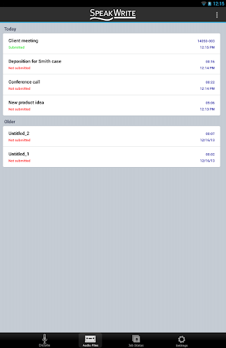 Analýza A Revize Aplikací Pro Android: SpeakWrite Recorder, Vyvinuté Společností SpeakWrite. Uvedeno V Kategorii Produktivita. Aktuální Verze Je 3.3, Aktualizována Na 27/03/2019 . Podle Recenzí Uživatelů Na Google Play: SpeakWrite Recorder. Dosaženo Více Než 214 Tisíc Instalací. SpeakWrite Recorder Má V Současné Době Recenze 597, Průměrné Hodnocení 3.6 Hvězd