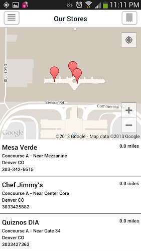 * Denver International Airport (DIA) restaurant locations including Quizno’s, Mesa Verde Bar and Grill and Chef Jimmy’s Bistro and Spirits.