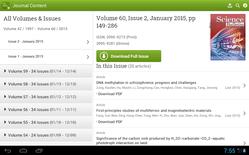 Využijte nejnovější vývoj v přírodních vědách s aplikací Science Bulletin. Science Bulletin je recenzovaný, komplexní časopis o otevřeném přístupu, který sponzoroval Čínskou akademii věd a Národní přírodní nadace Číny a publikoval Springer Science+Business Media. Primárním posláním deníku je podporovat komunikaci s novými a významnými výsledky výzkumu napříč oblastmi, které tvoří přírodní vědy. Časopis nabízí čitelné články, které mají okamžité a dalekosáhlé důsledky pro širší publikum.V Současné Době Nabízíme Verzi 3.03. Toto Je Naše Nejnovější, Nejvíce Optimalizovaná Verze. Je Vhodný Pro Mnoho Různých Zařízení. Zdarma Ke Stažení Přímo Apk Z Obchodu Google Play Nebo Jiných Verzí, Které Hostujeme. Kromě Toho Si Můžete Stáhnout Bez Registrace A Bez Nutnosti Přihlášení.