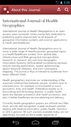 Využijte nejnovějšího vývoje ve všech aspektech geoprostorových informačních systémů a vědeckých aplikací ve zdravotnictví a zdravotnictví s aplikací International Journal of Health Geographics. International Journal of Health Geographics je reviewed-recenzovaný časopis Open Access Journal publikovaný společností Biomed Central.Tato bezplatná aplikace poskytuje cenné funkce včetně: