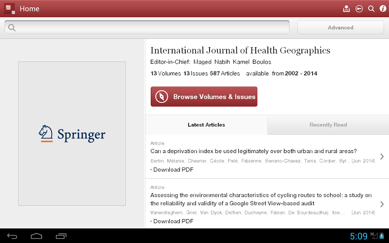 Analýza A Revize Aplikací Pro Android: Journal of Health Geographics, Vyvinuté Společností Springer. Uvedeno V Kategorii Knihy A Referenční Materiály. Aktuální Verze Je 3.02, Aktualizována Na 20/10/2014 . Podle Recenzí Uživatelů Na Google Play: Journal of Health Geographics. Dosaženo Více Než 100 Instalací. Journal of Health Geographics Má V Současné Době Recenze 2, Průměrné Hodnocení 5.0 Hvězd