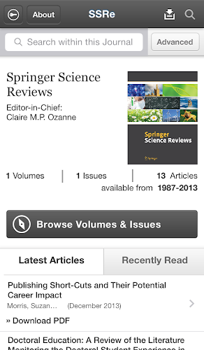 využijte nejnovější recenze literatury od vynikajících doktorandů a raných výzkumných pracovníků v oblasti života, biomedicíny a příbuzných věd pomocí aplikace Springer Science Reviews. springer science reviews je časopis vydávaný společností springer science+business media, který shrnuje nejnovější studie v oblasti života, biomedicíny a příbuzných věd. časopis aktivně podporuje vzájemné obohacování a přeshraniční myšlení, publikuje vedle sebe biologické a přímo související sociální a fyzikální vědy. časopis obsahuje pozvané odborné recenze relevantní jak pro začínající výzkumné pracovníky, tak pro zavedené výzkumné pracovníky.tato bezplatná aplikace poskytuje cenné funkce, včetně: