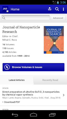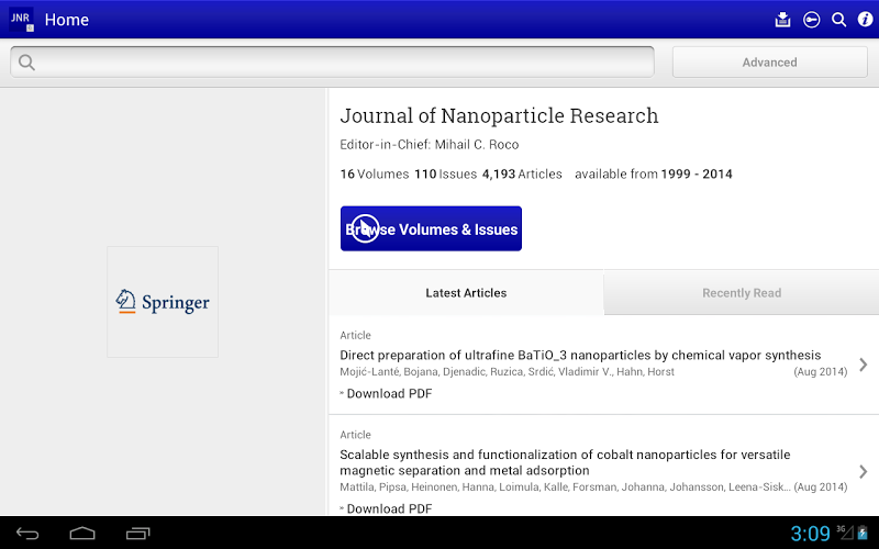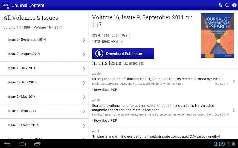Tap into the most recent developments in the field of nanoparticle science and technology with the Journal of Nanoparticle Research app. The Journal of Nanoparticle Research is a peer-reviewed journal published by Springer Science+Business Media that explores the specific concepts, properties, phenomena and processes of structures at the nanoscale size range.